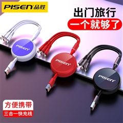 双面彩绘一拖三伸缩数据线(1.2m)(红色)纸质彩盒装-国内版CN