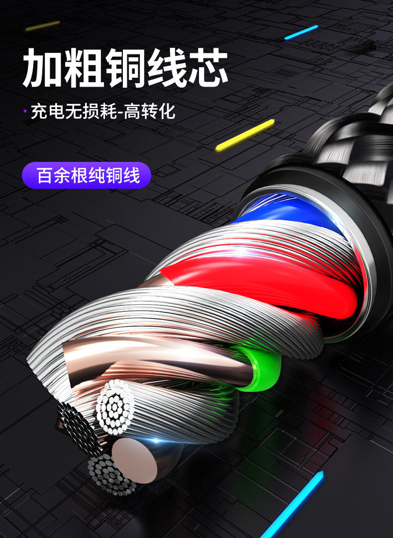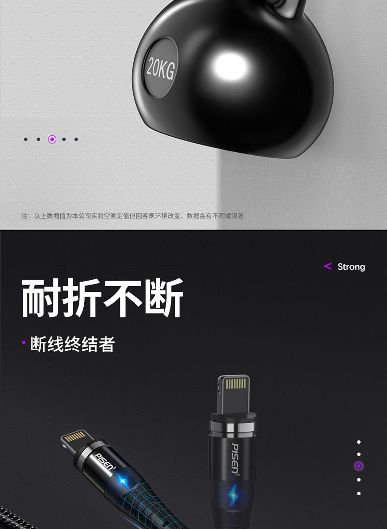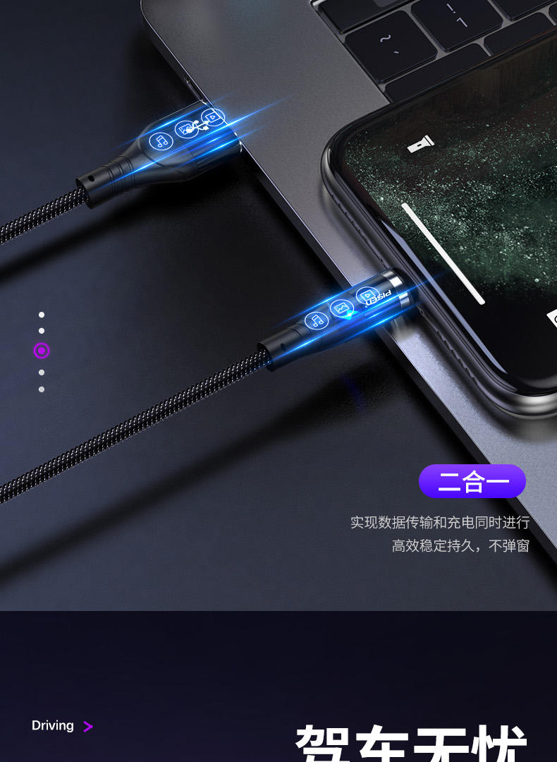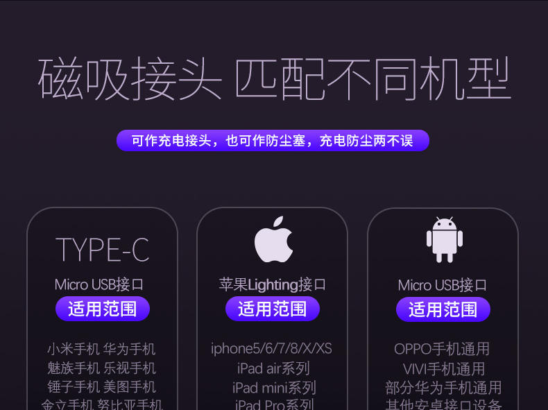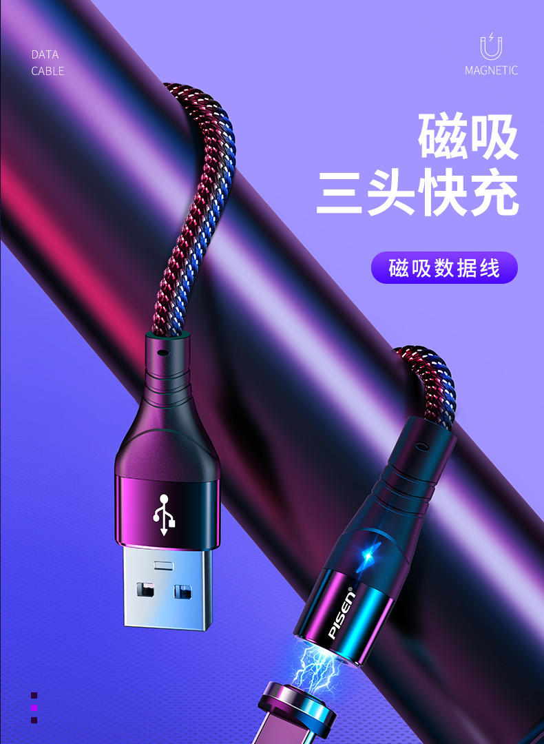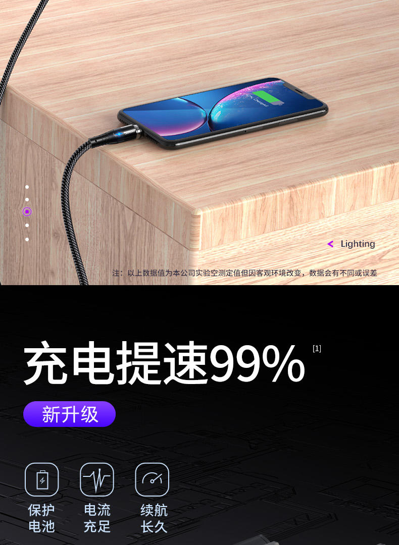 三合一闪电灯免插拔圆头磁吸数据充电线(2m)(魔幻黑)纸质彩盒装-国内版CN