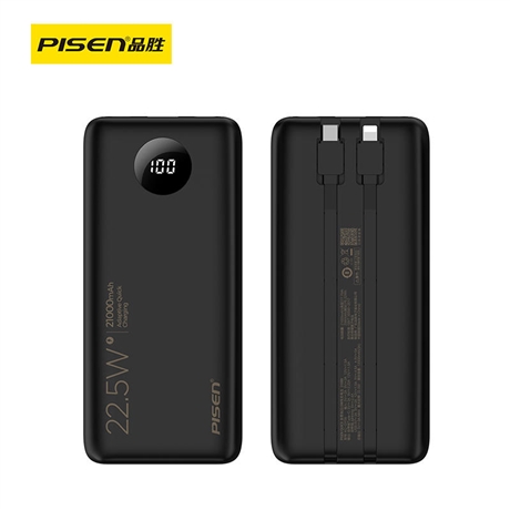 PISEN QUICK 自带线22.5W快充电宝21000(魔幻黑)纸质彩盒装-国内版CN