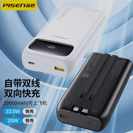PISEN QUICK 双自带线22.5W数显快充电宝20000(TP-D28/云初白)