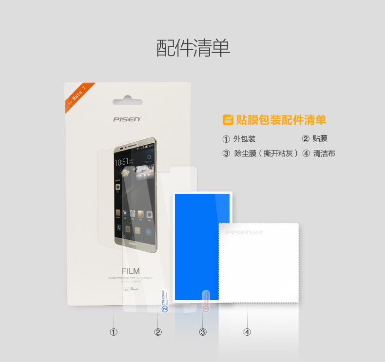 品胜 华为 Mate7光面贴膜(新版)| HUAWEI Mate7 屏幕保护膜 手机贴膜